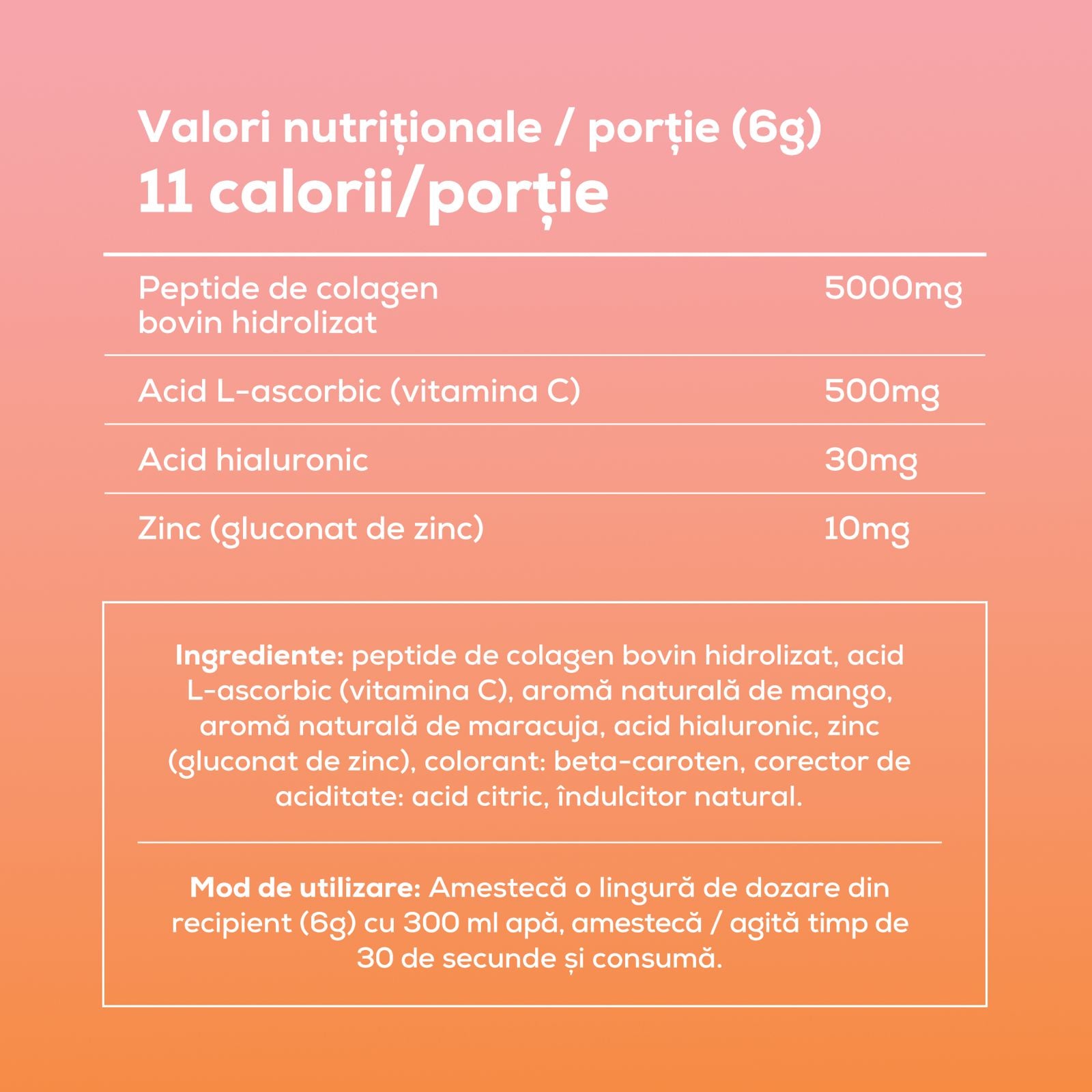- Cantitate netă 360g. (60 de porții)