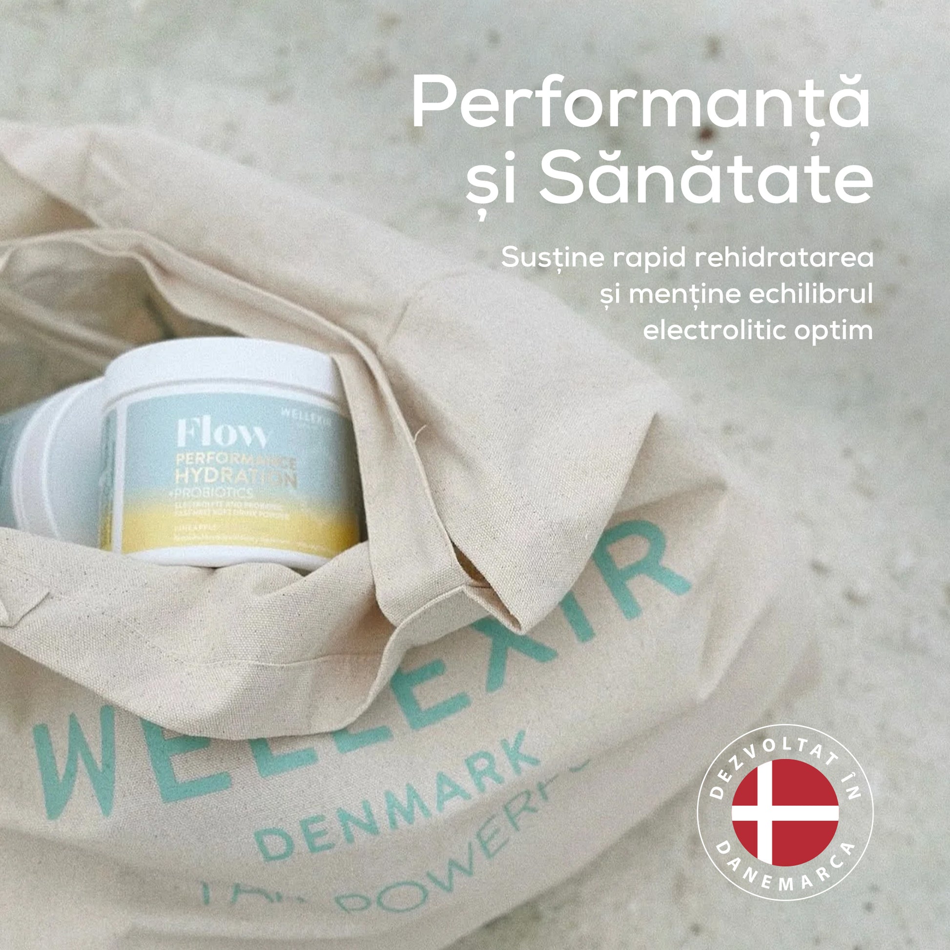 WELLEXIR Flow este creat în colaborare cu experți în nutriție și sportivi de performanță, oferind o hidratare superioară și o absorbție eficientă a mineralelor, esențială în timpul antrenamentelor sau în zilele caniculare.