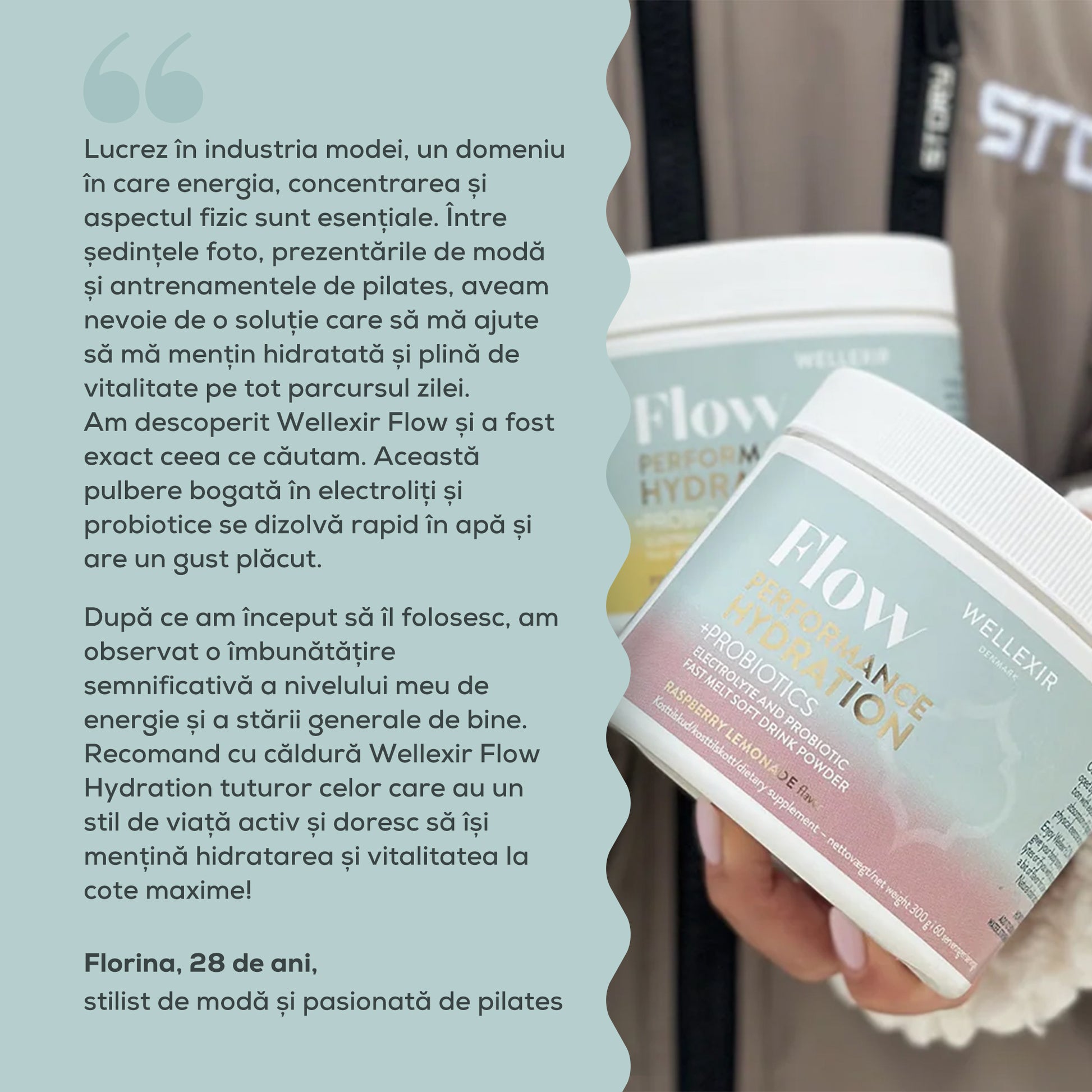 În plus față de hidratarea normală, beneficiază de 10 tulpini probiotice avansate, care contribuie la sănătatea digestivă, echilibrul florei intestinale și întărirea imunității. Acest aspect face ca WELLEXIR Flow să iasă în evidență față de alte băuturi pentru hidratare, oferind o soluție completă pentru sănătate și performanță.