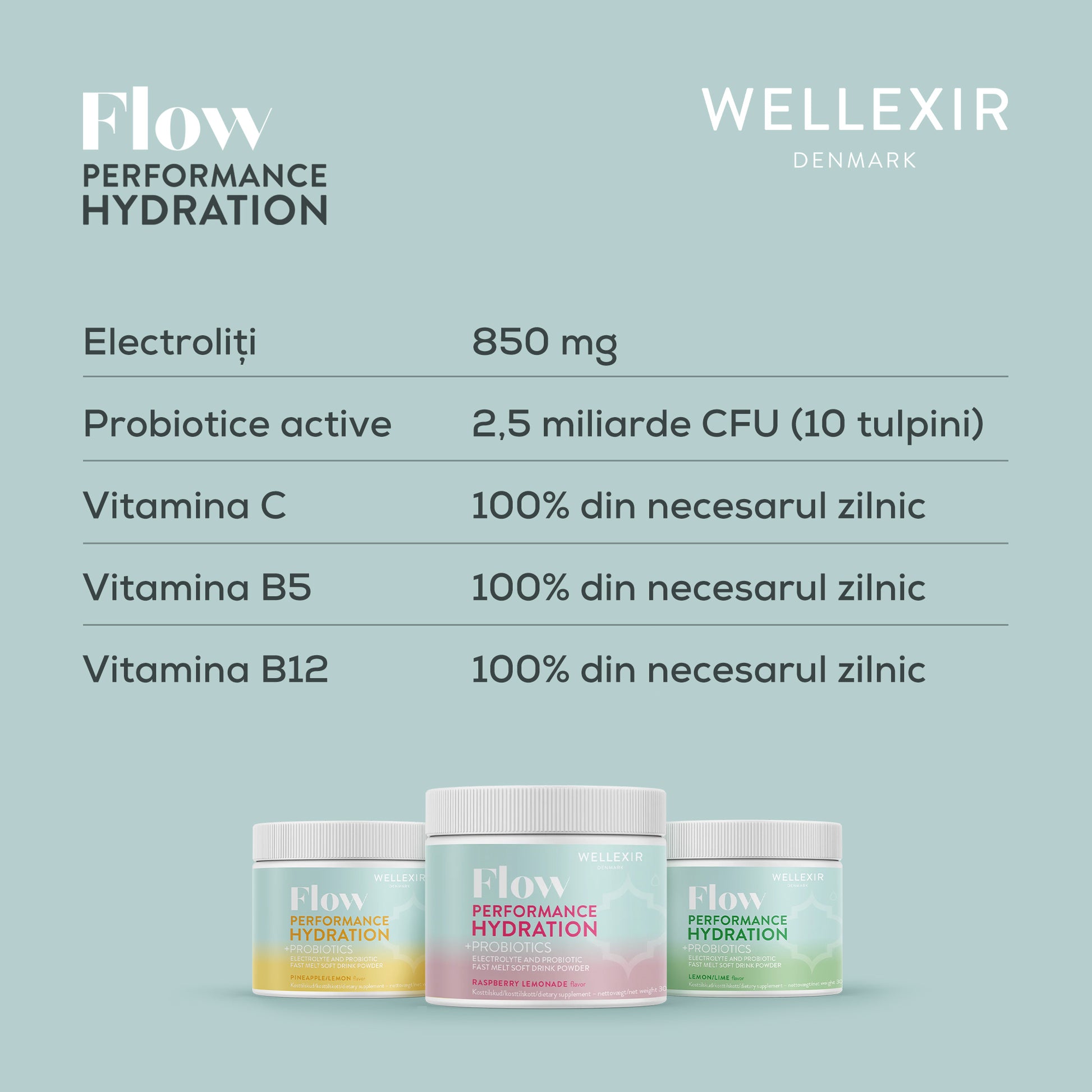 În plus față de hidratarea normală, beneficiază de 10 tulpini probiotice avansate, care contribuie la sănătatea digestivă, echilibrul florei intestinale și întărirea imunității. Acest aspect face ca WELLEXIR Flow să iasă în evidență față de alte băuturi pentru hidratare, oferind o soluție completă pentru sănătate și performanță.